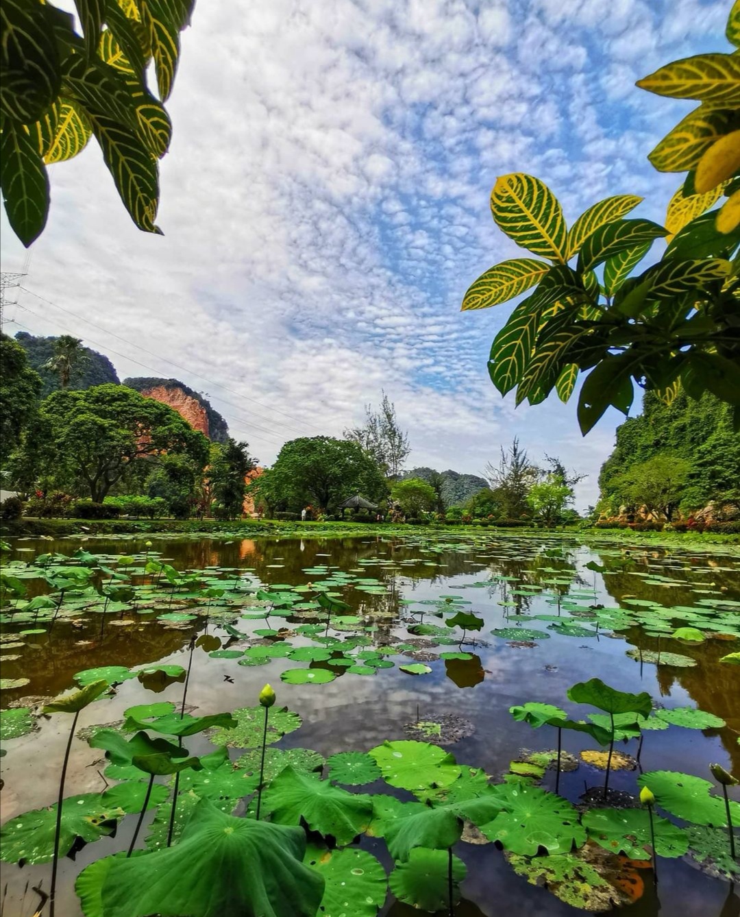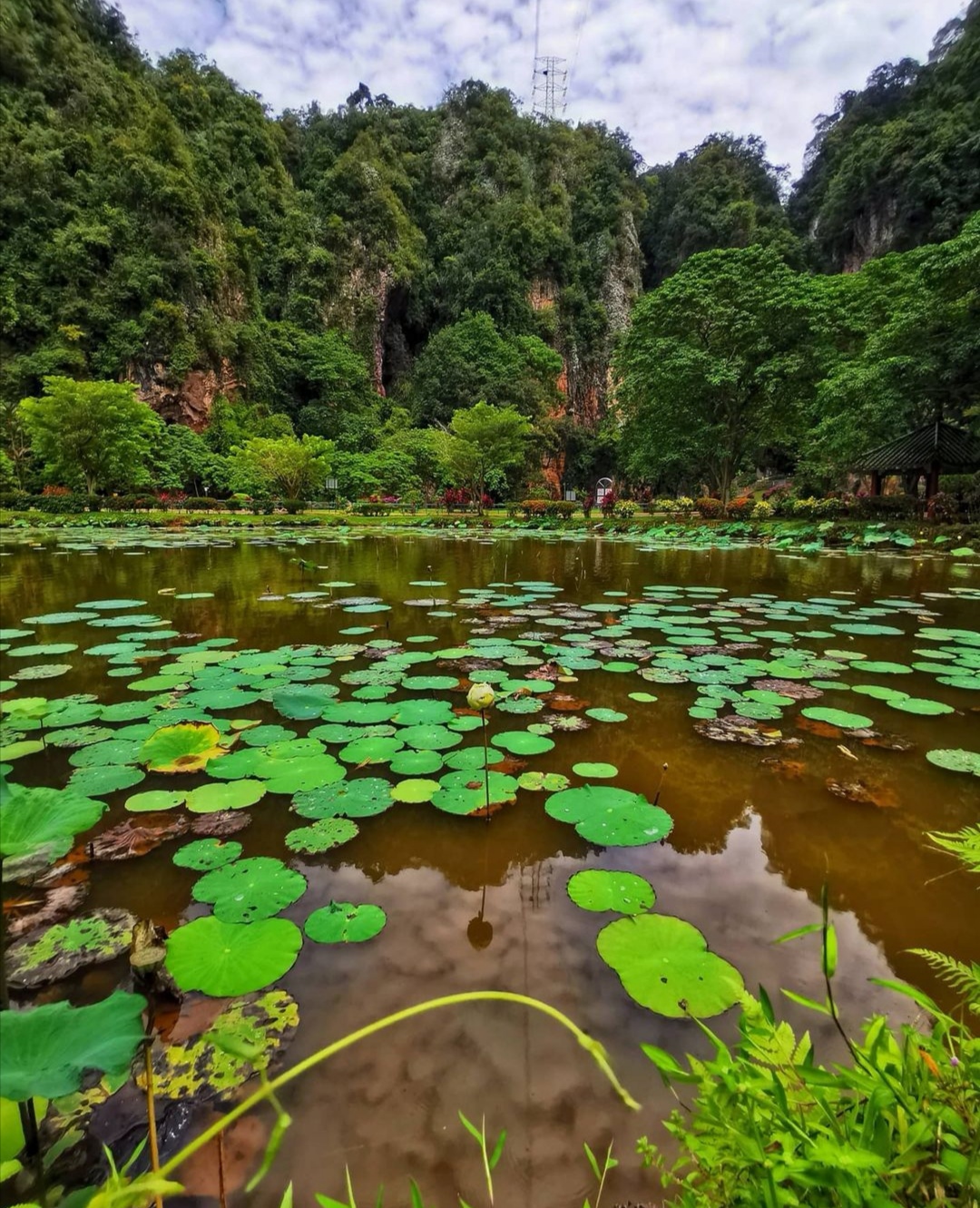 The gardens include gazebos, a reflexology path and a massive electricity pylon. A cement plant is also visible behind a screen of trees but it does not really spoil the beauty of the garden.